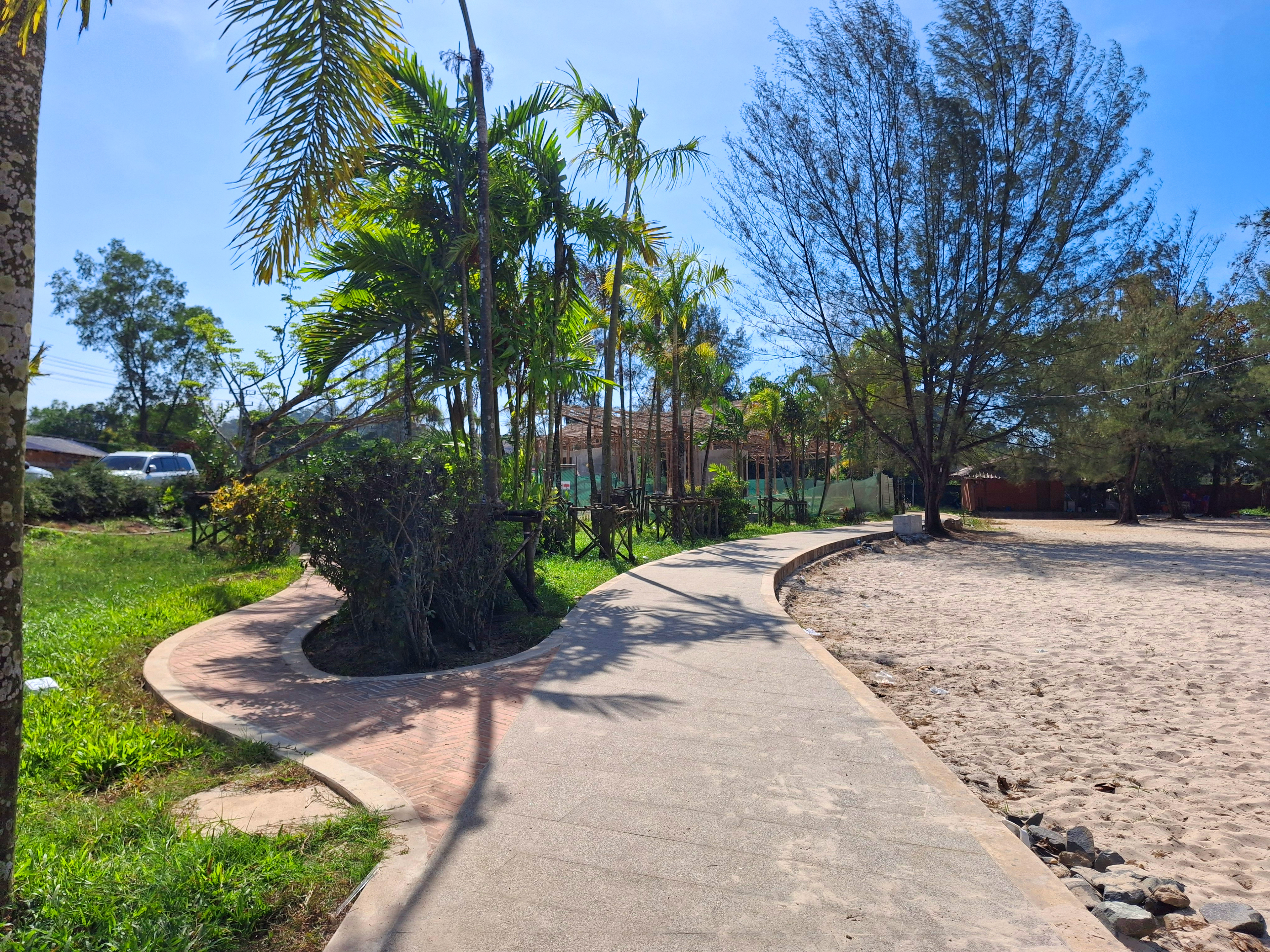Equally important is how people move through these spaces. Pathways follow sinuous, organic curves instead of rigid lines, echoing natural forms found in sand and vegetation. Their width is carefully designed to offer comfort without overbuilding, avoiding excessive hard surfaces. This approach allows the soil and sand to remain permeable, supporting natural drainage and letting the ground “breathe.”