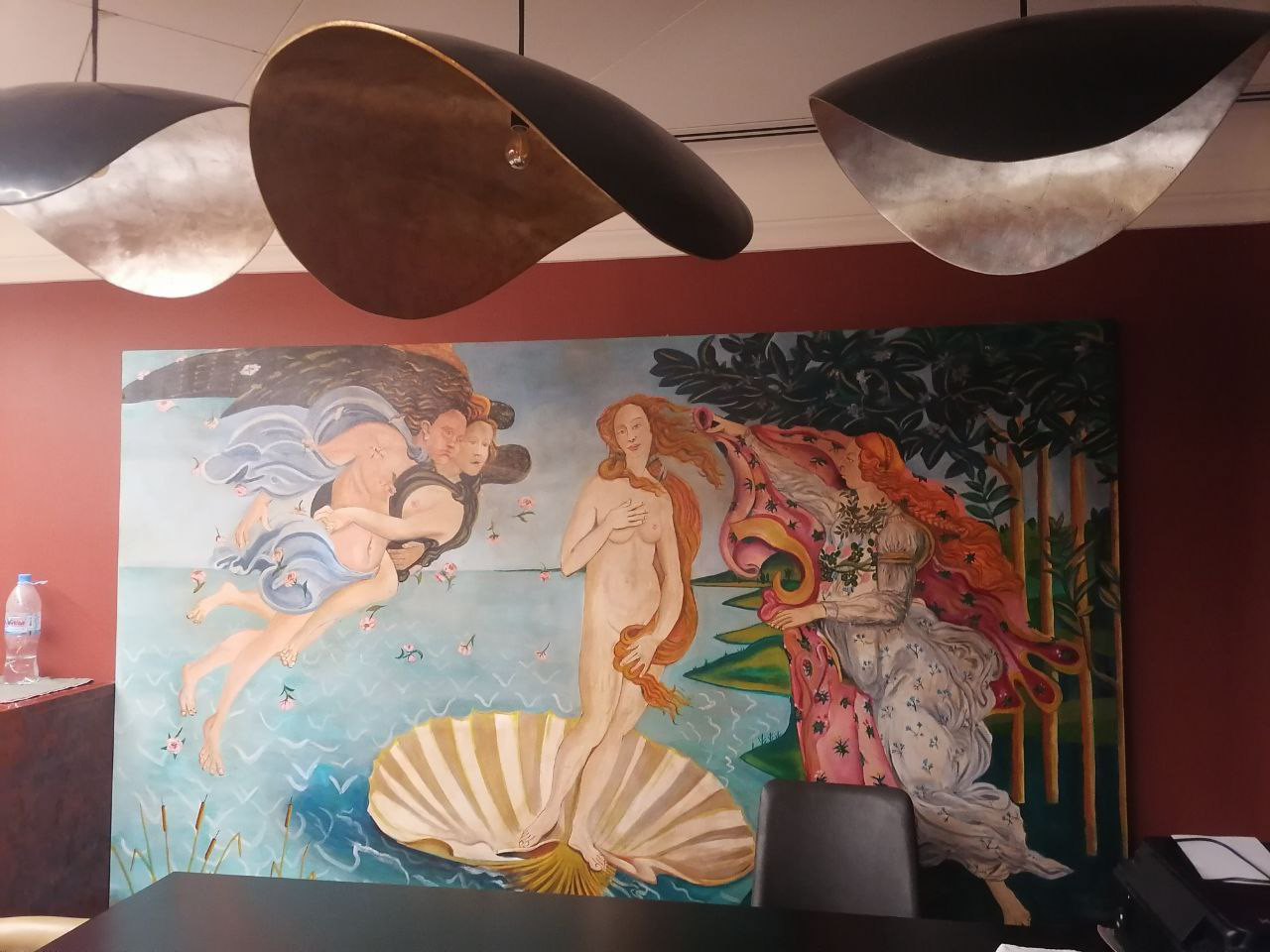 The site, an aseptic box, suggested the cladding of the cold concrete walls and columns with curvy gypsum panels, painted with a warm and foresty green. A playful patchwork of shapes and materials: arches, gold, ovals, mirrors, rusted metal, marble statues; the intent was to revoke the classic design with fun and irony.